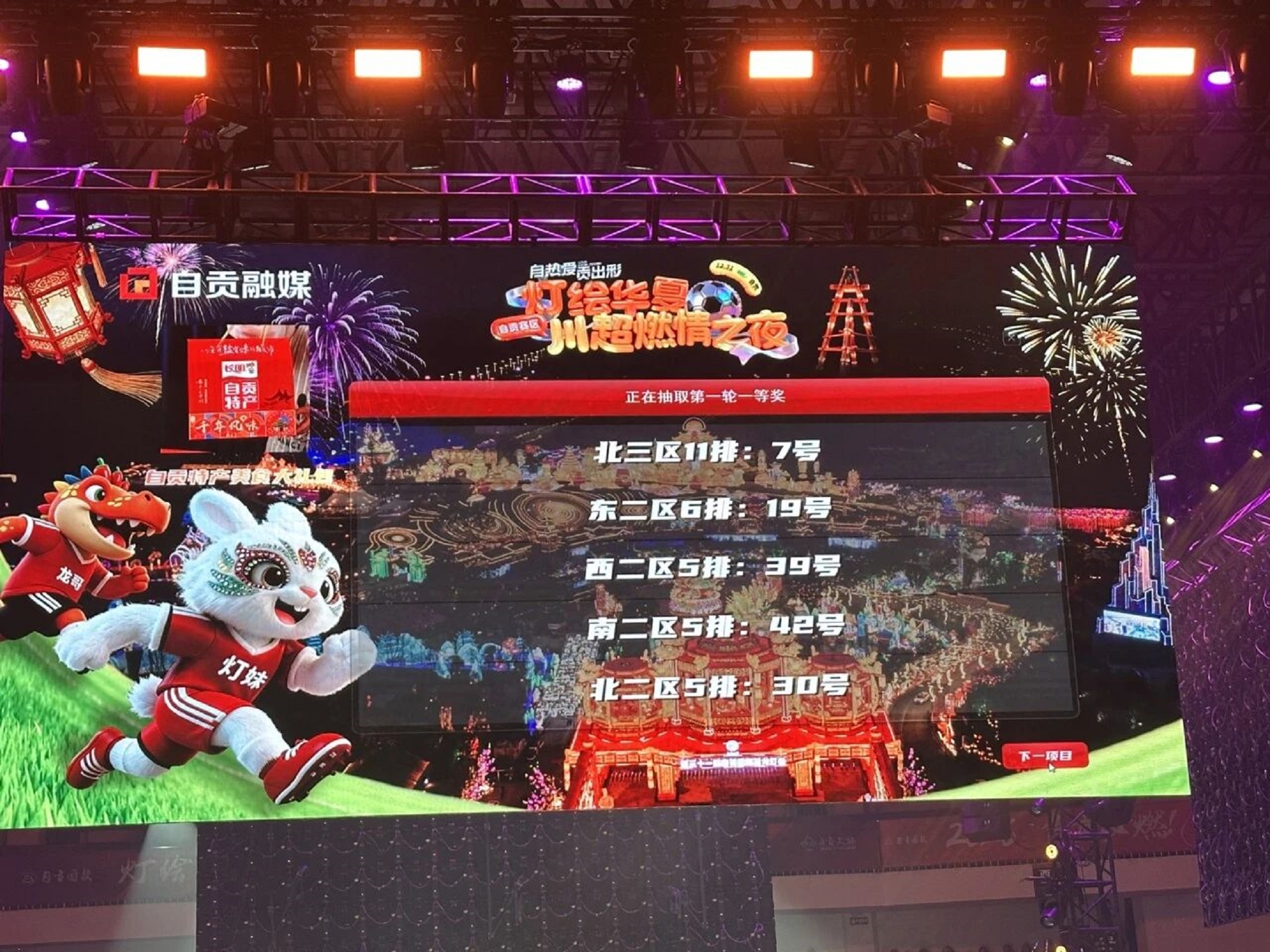 活动还安排了三轮激动人心的现场抽奖环节,不仅有自贡冰箱贴、长明美食大礼包,还为观众送上自贡方特恐龙王国、第32届自贡国际恐龙灯会和2026赛季川超自贡主场门票。