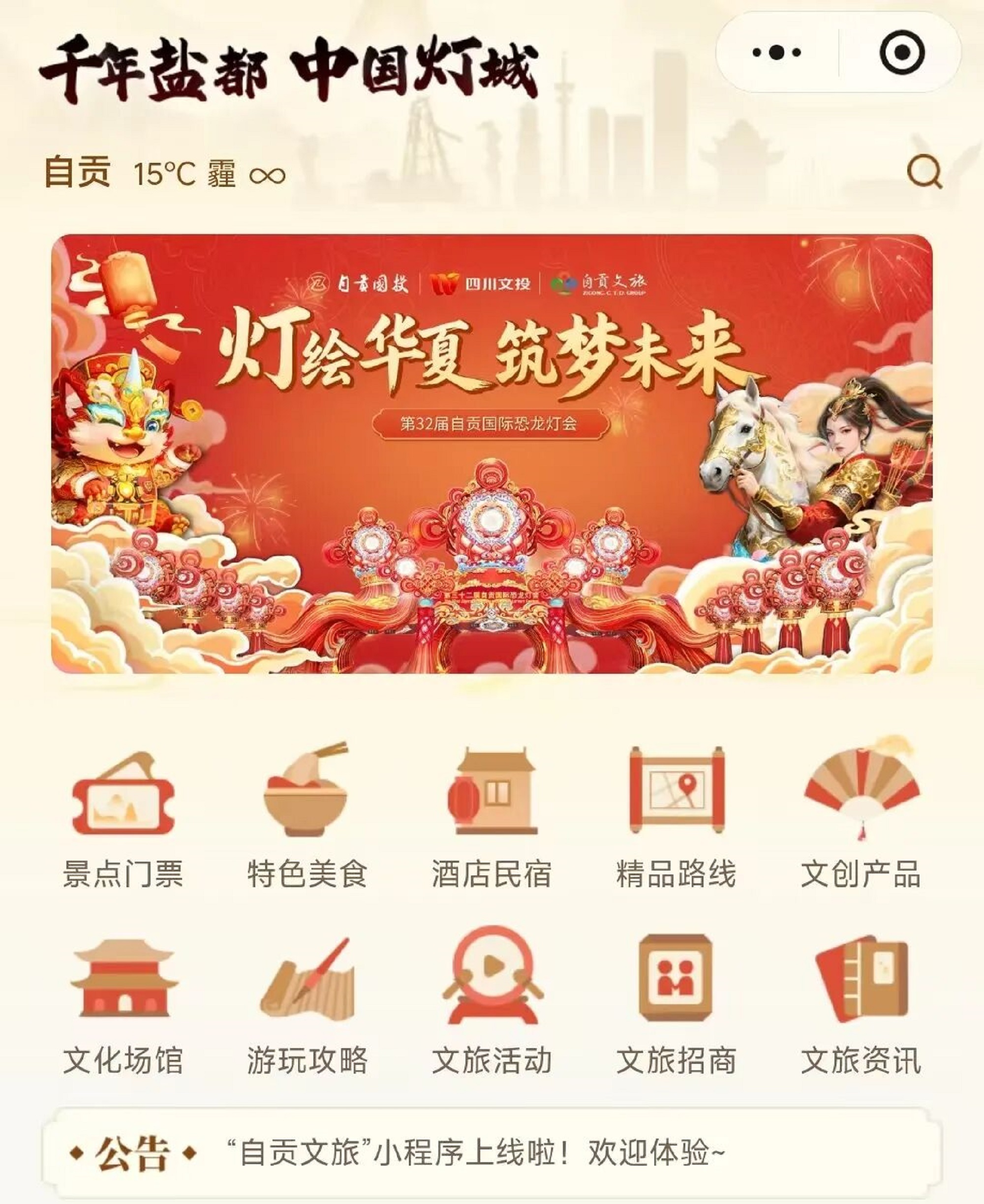 “自贡文旅”小程序界面