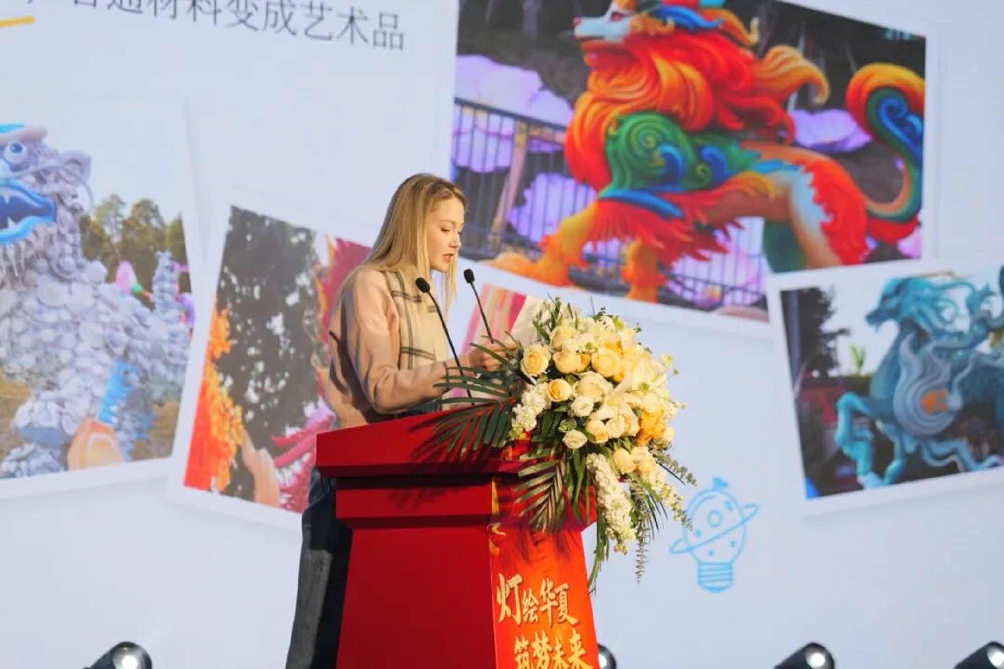 外籍网红“卡捷琳娜”在第32届自贡国际恐龙灯会发布会上推介自贡文旅