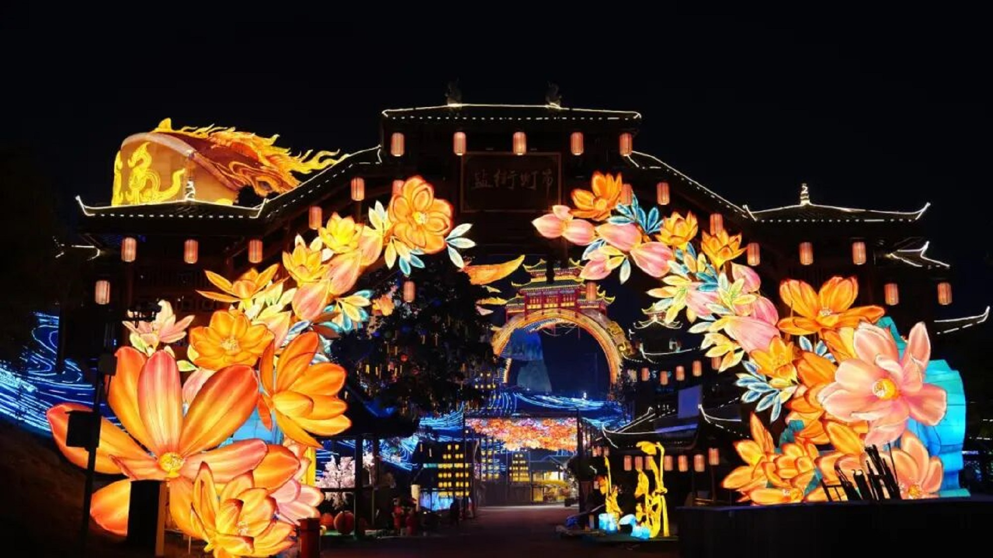 《盐街灯市》灯组开灯亮灯实拍图