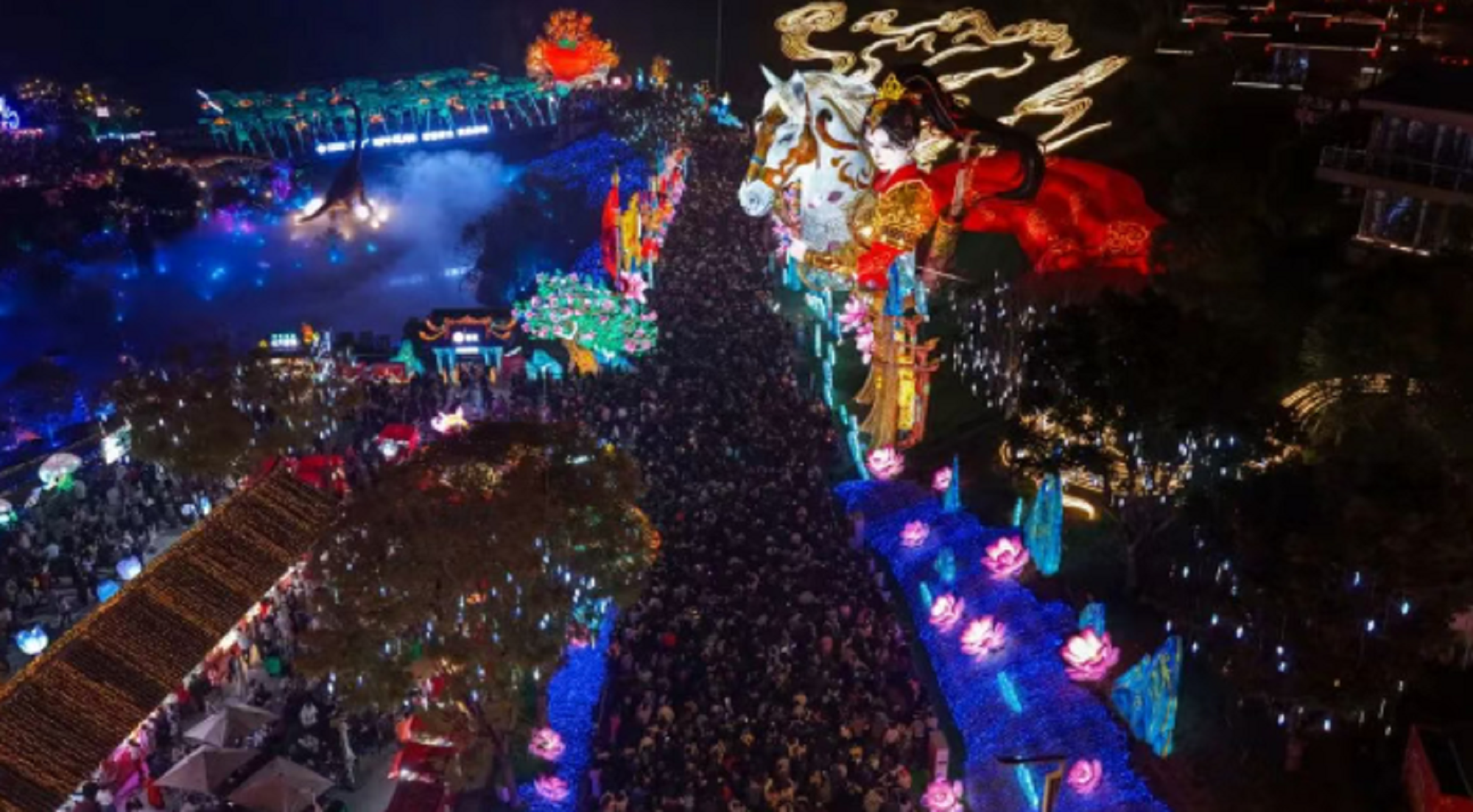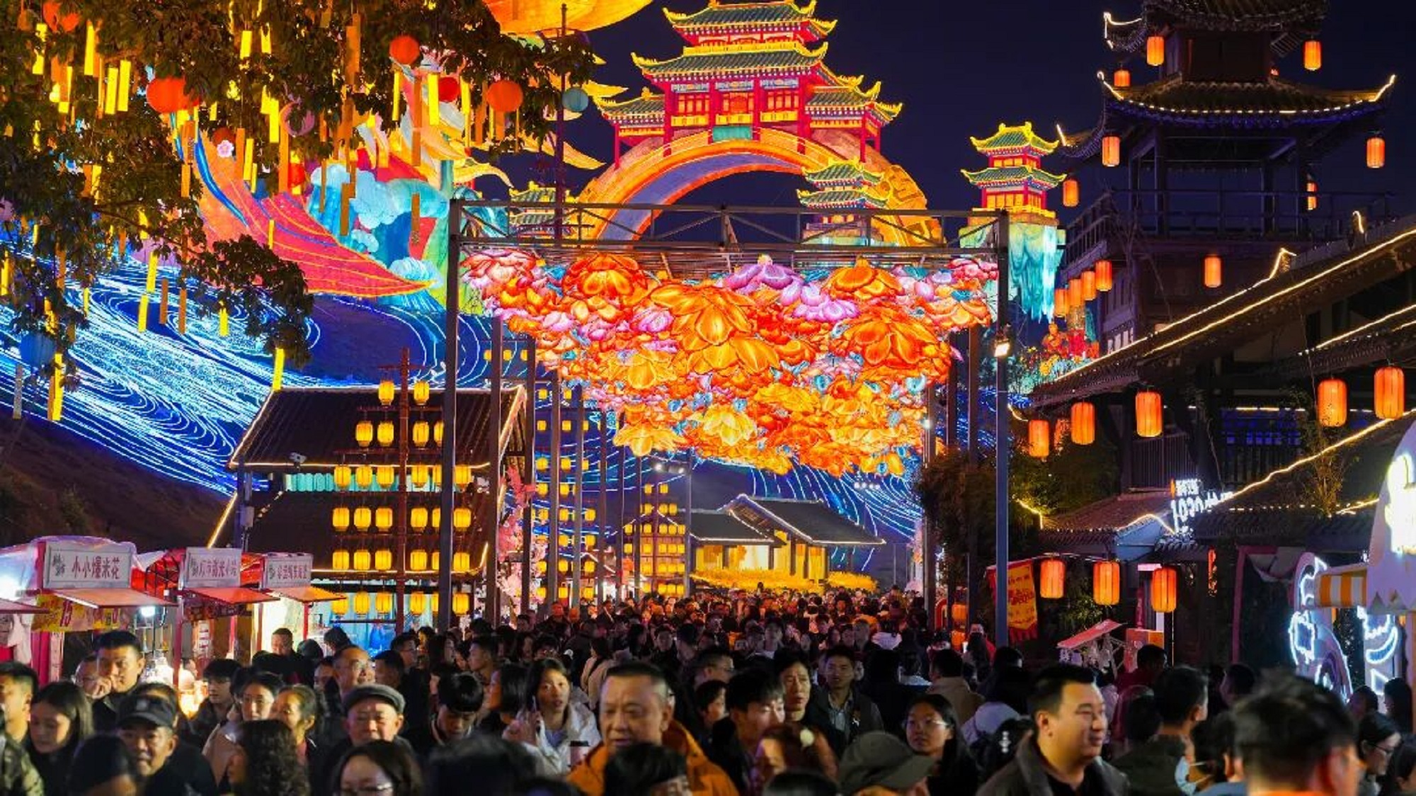 当夜幕降临,中华彩灯大世界内,十大板块、31个主题灯景瞬间点亮,璀璨灯火映照八方游客的笑脸,人群穿梭其间,赏灯景、品美食、看演艺、享互动,成为这个春节最耀眼的文旅风景线。