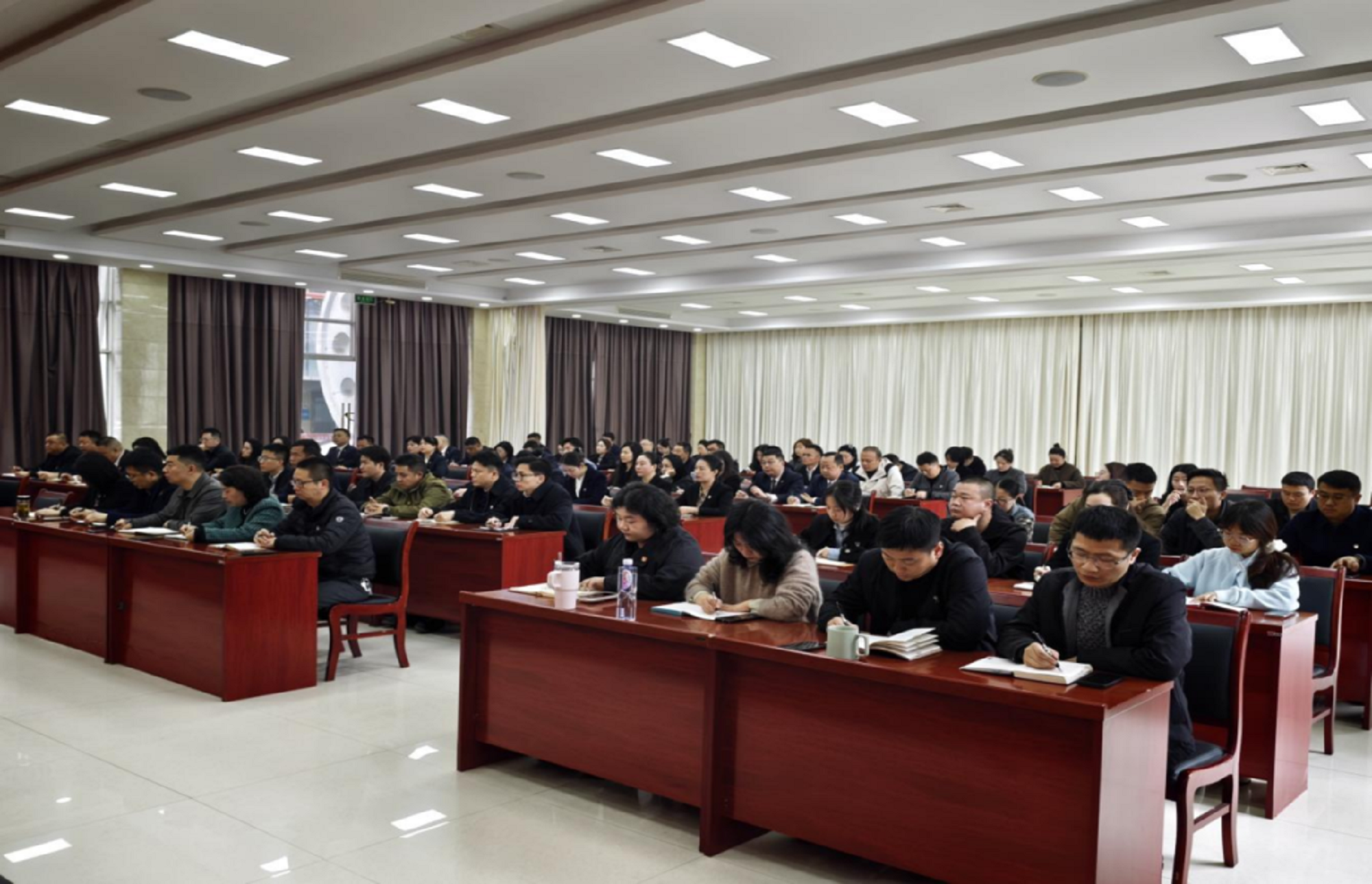集团公司党委委员王国强、袁红戟,集团公司中层干部、子公司中层及以上干部,集团公司本部及子公司全体党员共100余人参加会议。