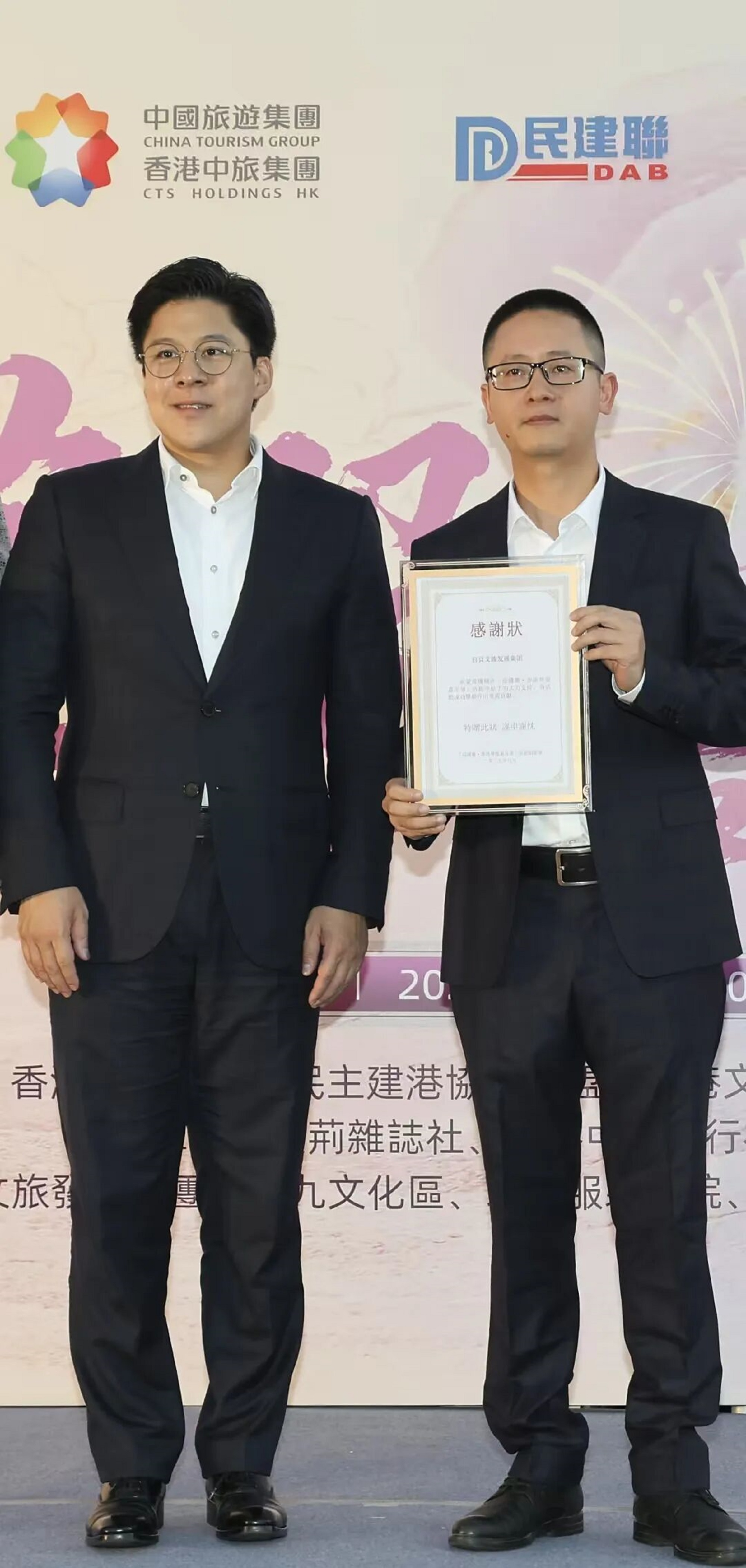 活动现场,霍启刚代表组委会向自贡文旅集团颁发感谢状。自贡文旅集团表示将持续发力——自贡彩灯承载千年文化底蕴,凝聚无数工匠心血,既是艺术瑰宝,也是文化交流使者。此次华服彩灯嘉年华,愿为广大香港市民呈现最优的中华彩灯作品,传递中华优秀传统文化魅力!