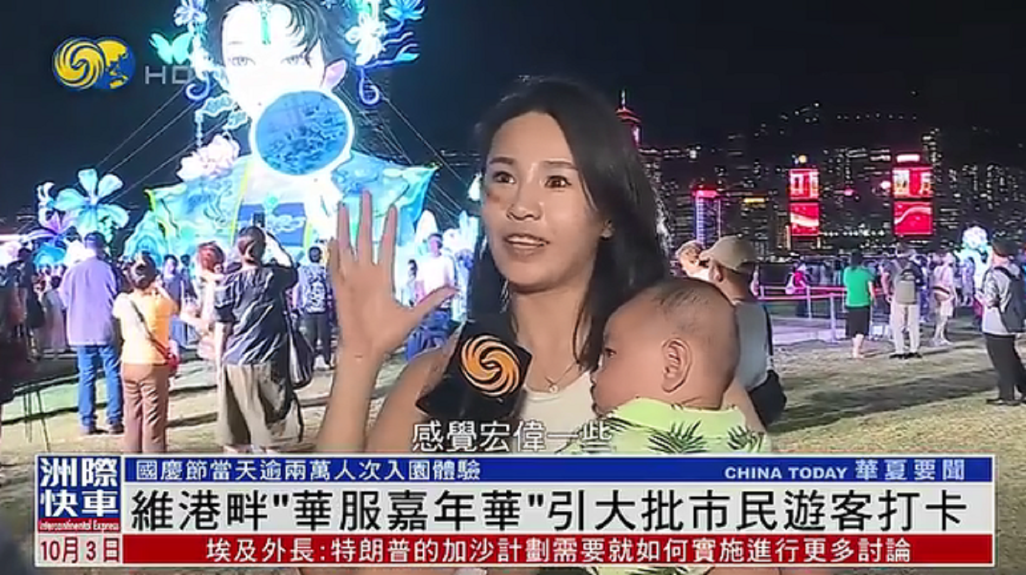 这场嘉年华不仅是视觉盛宴,更是一次深刻的文化对话。自贡彩灯作为国家级非遗,以精湛工艺征服观众;华服与现代时装的碰撞,则展现了传统与创新的无限可能。多位受访者提到,展览让他们感受到“中西文化交融的魅力”,尤其是自贡彩灯的加入,为香港注入了罕见的东方韵味。游客表示,“自己用肉眼看,感受到很漂亮,我觉得,所以我很接受这个东西,觉得很漂亮,颜色也搭配的很好,紫色搭配蓝色,一点都不红红绿绿的那种庸俗,都很有他的品味我觉得,西九这边我都好多次来,发现好多次的展览都很西式,真正东方的艺术品很少,而这次能搞一个这样子的,我觉得是一个突破,中西合璧,完美!”