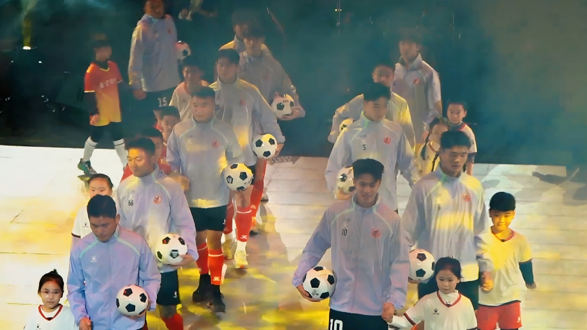 谁说球员只属于绿茵场?自贡灯城燊龙队的队员们身着帅气西装,踏着音乐走上舞台,一场 “球场T台秀”瞬间点燃全场!
