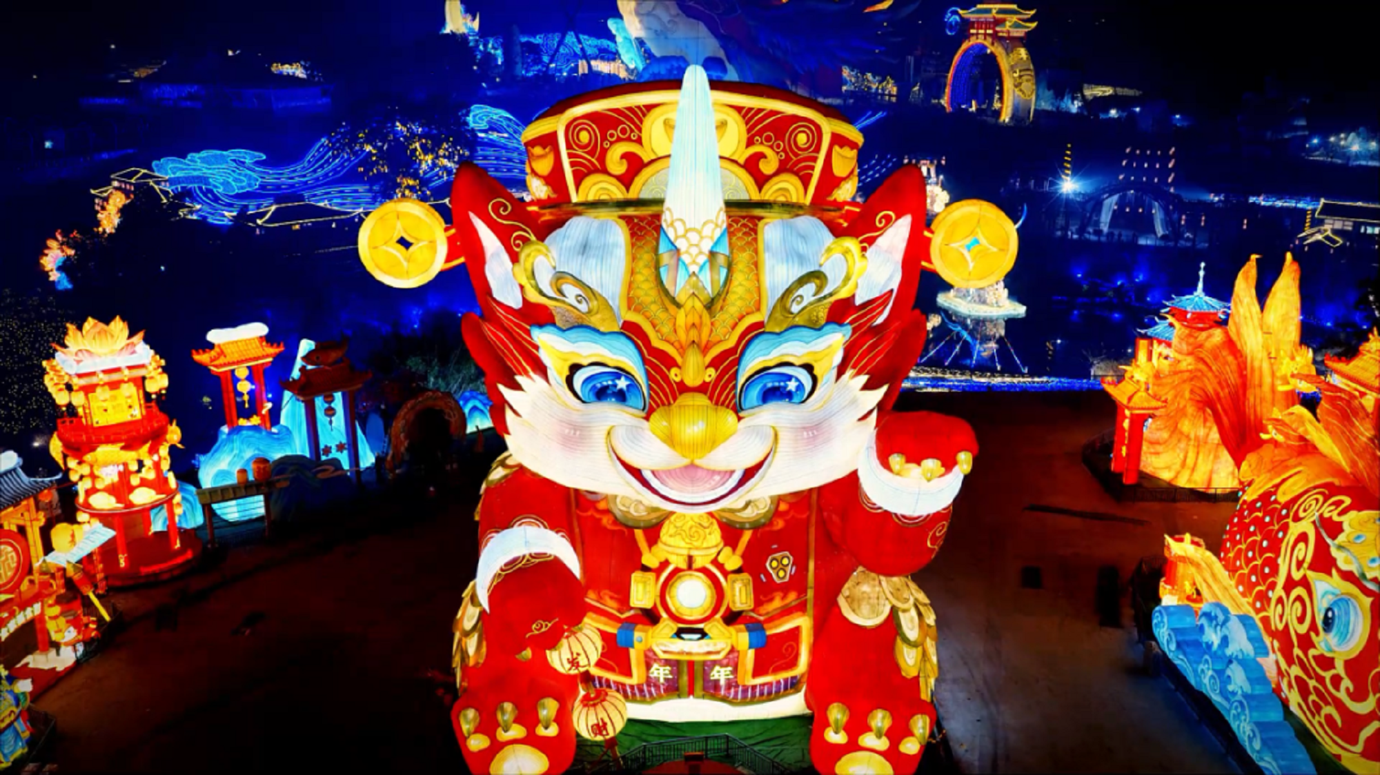 《年年招财》灯组亮灯实拍图