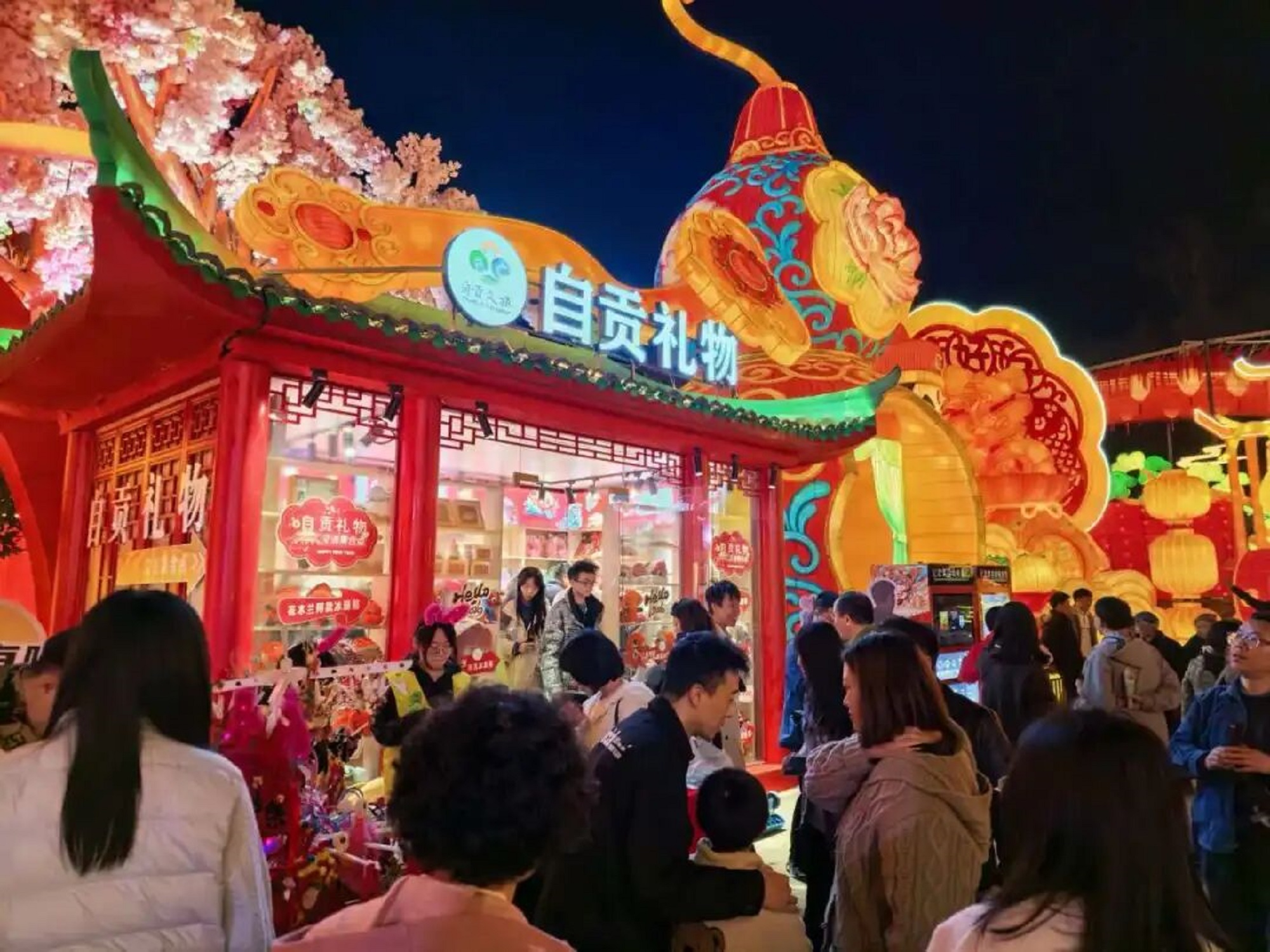 特别值得一提的是,今年灯会文创品销售尤为火爆。市文旅发展集团为本届灯会创新推出的30余款文创产品,涵盖纪念品、玩具、背包、灯具等多个品类。其中,展现自贡地标建筑和文化特色的“自贡”地图夜光冰箱贴,时尚实用的“时空龙骑士”恐龙背包等成为“网红”产品,深受游客喜爱,营业额同比增长约21%。