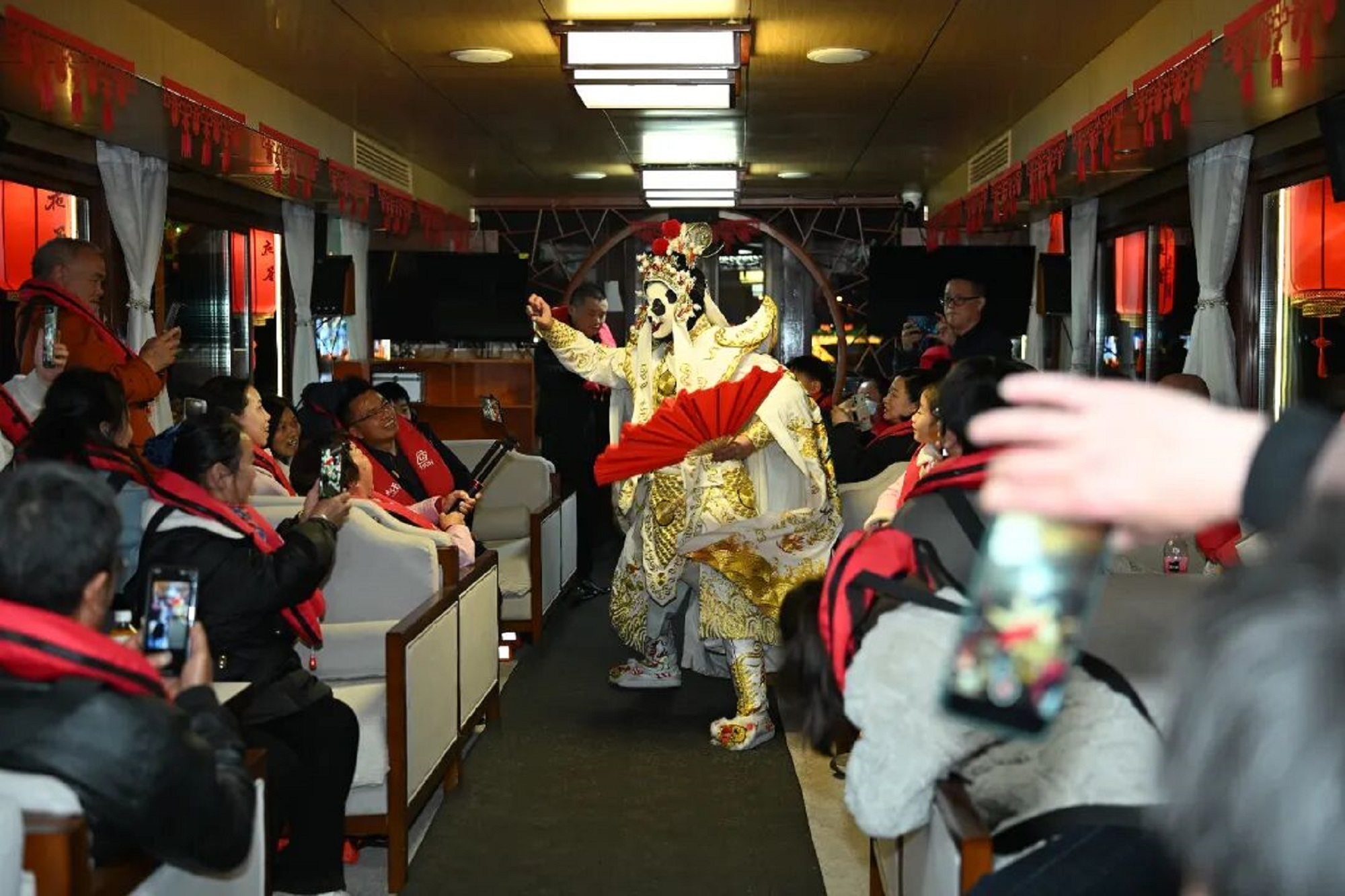 这个春节,“夜游釜溪”化身“水上奇幻夜”,川剧变脸、曲艺演艺、汉服鱼灯齐上阵,让游客在乘船赏景的同时感受传统新春的欢乐氛围。此外,还有非遗铁花秀震撼上演,铁水击空、火花漫天,将整条河的年味推向高潮。丰富多彩的活动吸引了众多游客专程前来打卡。